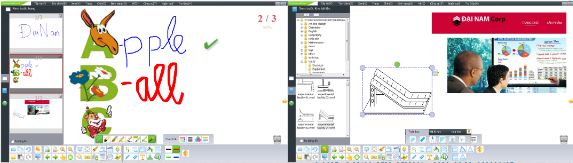 + Thay thế cho bảng trắng thông thường với phần mềm tích hợp sẵn Whiteboard, Chalkbox.