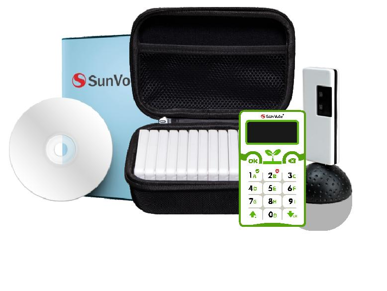BỘ THIẾT BỊ TRẢ LỜI TRẮC NGHIỆM SUN VOTE S52 PLUS EDUCATION bao gồm: 1 trạm cơ sở trung tâm, 1 thiết bị cho giáo viên, thiết bị trả lời trắc nghiệm học sinh, phần mềm điều khiển tích hợp Sunvote.