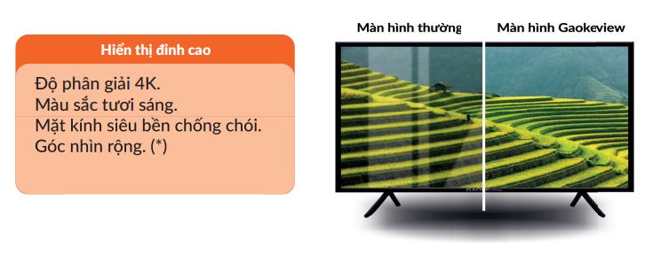Bề mặt kính của tivi cường lực GAOKEview 75 inch được phủ một lớp phủ chống chói, chống bám vân tay, chống trầy xước, giúp giảm thiểu các dấu vân tay và mảnh vụn bám trên màn hình. Điều này giúp tăng tính thẩm mỹ cho tivi, giảm thiểu các vết bẩn và dễ dàng vệ sinh sau sử dụng.