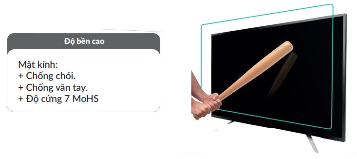 Bề mặt kính của tivi được phủ một lớp phủ chống chói, chống bám vân tay, chống trầy xước, giúp giảm thiểu các dấu vân tay và mảnh vụn bám trên màn hình. Điều này giúp tăng tính thẩm mỹ cho tivi, giảm thiểu các vết bẩn và dễ dàng vệ sinh sau sử dụng.