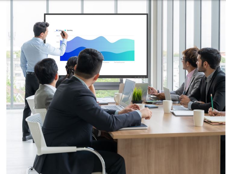 Màn hình tương tác cũng là một trong những đổi mới được sử dụng phổ biến trong các phòng họp của doanh nghiệp nhằm mục đích tăng khả năng hiển thị và truyền tải ý tưởng kinh doanh của công ty một cách hiệu quả nhất. Bên cạnh đó, thiết bị này cũng được sử dụng tại các hội nghị, triển lãm, hội thảo,... nhằm đem lại phương thức tuyền đạt thông tin hiện đại và hiệu quả nhất. Tuy nhiên, với mức ngân sách đầu tư hạn hẹp và nhu cầu sử dụng trong thời gian ngắn thì dịch vụ cho thuê màn hình tương tác là giải pháp tối ưu chi phí nhất.