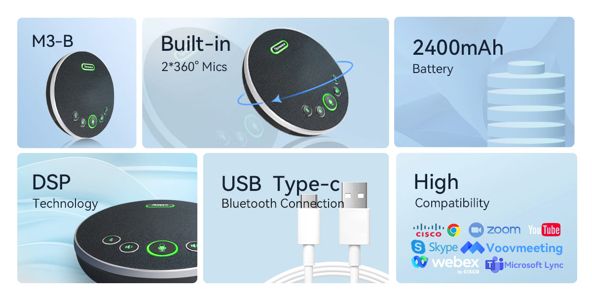 1. Thích hợp cho phòng họp trong phạm vi 40 mét vuông. Hỗ trợ họp trực tuyến dưới 10 người.